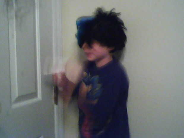 Hemos decidido rehacer el dormitorio de mi hijo.Paso 1: puertaUn signo apropiado para considerar le encanta caminar alrededor de la casa sin camisa en la puerta de mi hijo. El diente de tiburón que obtuvo para sí mismo en Hawaii nadando hacia fuera a