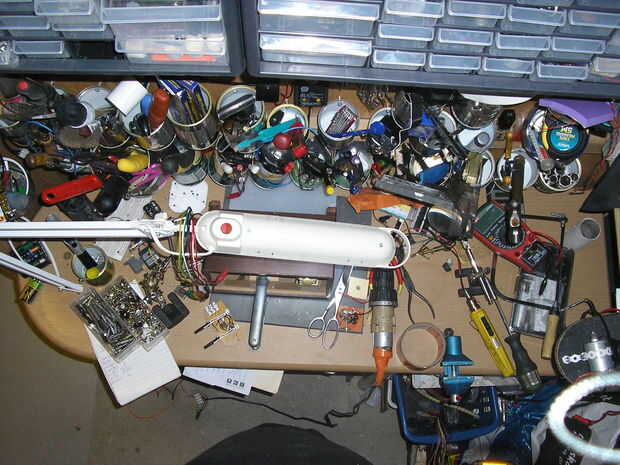 Here are some pictures of my lab where I do most of my electronic projects. También les etiquetados con información. La mayoría de metal, plástico y madera se hace fuera de nuestra casa, en un cobertizo separado. He publicado a esta guía, ya que podr