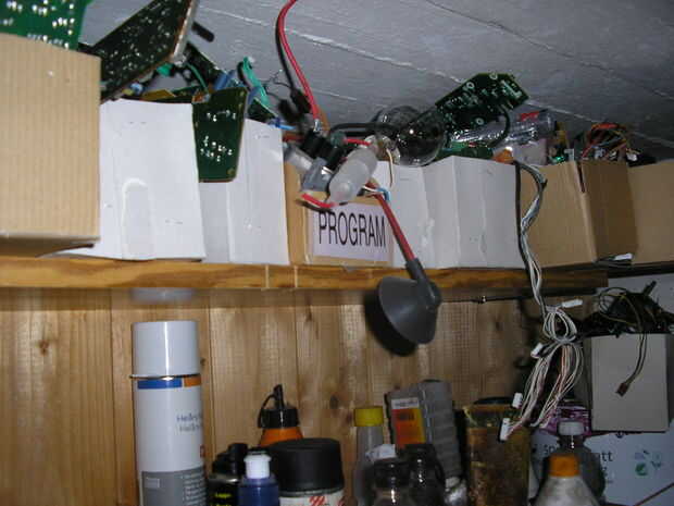 This is my workshop, a lot of the tools are pretty old, but I like it. Mi taller consta de mi taller y mi laboratorio de electrónica. Hay llevar a cabo experimentos de alto voltaje (HV), así como intrincados circuitos (simplemente no se mezclan los d