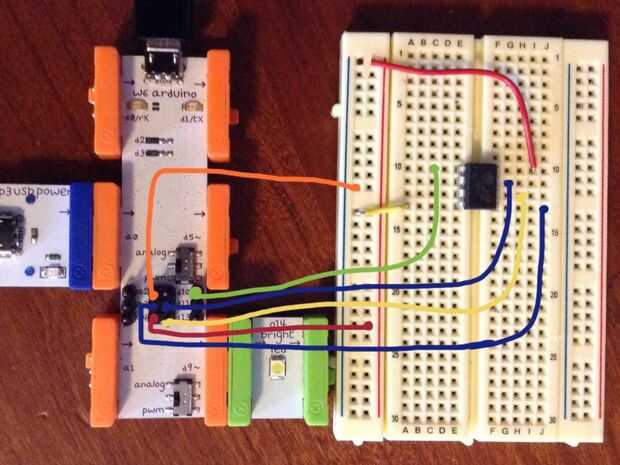 Este instructable le mostrará cómo programar un chip ATtiny85 de un littleBits Arduino. Hay una variedad de chips ATtiny; Yo se centrará en el ATtiny85. Es una gran manera de hacer una versión barata y permanente de su prototipo, como mi nuevo módulo "controlable RGB led" (si consigue 1.000 votos en los próximos 45 días, lo hará un poco oficial, así que por favor, para que en el bitLab nuevo).