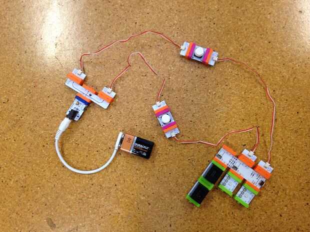 Fuimos enviados cuatro littleBits Kits de lujoy varios de sus nuevo Arduino en módulos de corazón. Este es uno de muchos proyectos que hemos realizado para construir de la noche!
