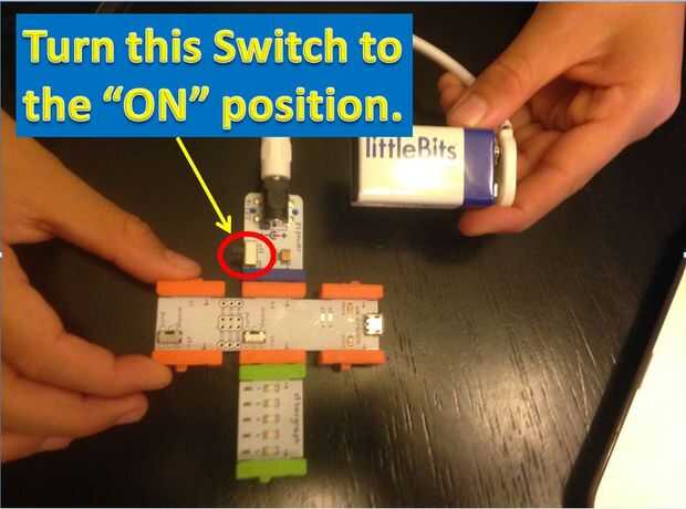 Una vez finalizada la configuración de LittleBits Arduino, asegúrese de encender a la configuración como se muestra en la imagen.