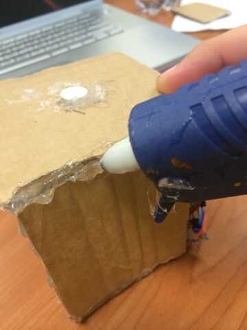 Crear un cuadro pegando cartón de desecho. Dejo parte de la caja sin pegado para que todas las piezas de littleBits cabe en.