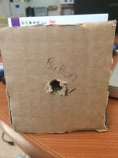 Asegúrese de que cortar un agujero en la parte superior donde el botón littleBits cabe a través de y toda la parte delantera donde puede caber el motor de la C.C. a través.