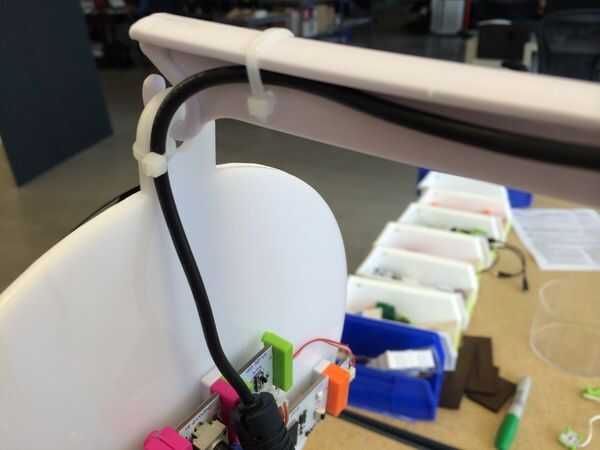 Un grappler es en el extremo de la brazo de Robot de la ISS y se utiliza para agarrar a los objetos en el espacio – como los astronautas! Hemos creado una réplica de trabajo utilizando un tubo de acrílico, una lámpara de escritorio y módulos de littl