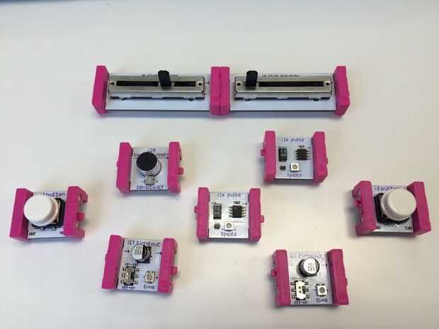 El siguiente paso al proyecto littleBits es los módulos de entrada. Módulos de entrada son de color rosados y vienen en botones, interruptores y sensores. Módulos de entrada ayudan a llevar su proyecto a la vida, dándole la capacidad a pulso, dim y tiempo de espera de los módulos de salida (paso 4). Módulos de entrada pueden utilizarse antes de los módulos de alambre si buscando el mismo efecto entre todas las conexiones, sin embargo si está utilizando un módulo de tenedor por ejemplo y quieres que un efecto diferente en cada una de las 3 ramas fuera de circuitos lo mejor sería utilizar la entrada después de los módulos de alambre. El kit de littleBits vendrá con: