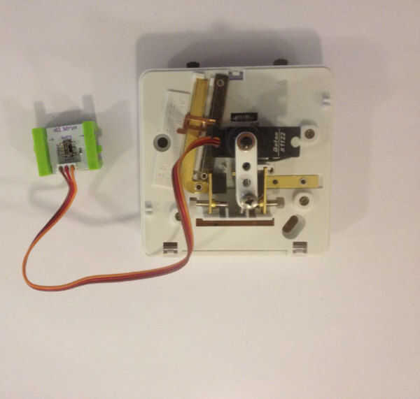 Pegue el servo al termostato para que el contacto puede oscilar de un extremo del interruptor a la otra.