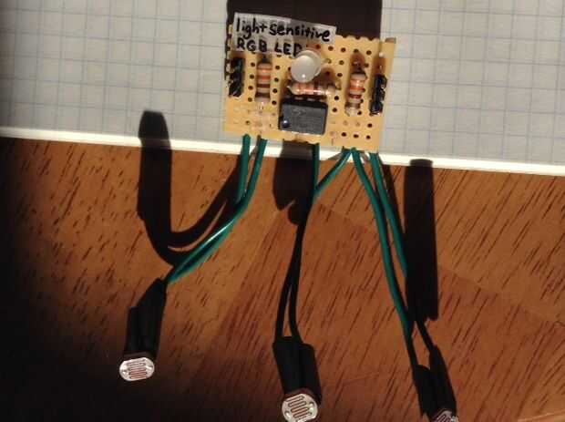 6) buen trabajo! Puse delante del televisor para hacer una lámpara de estado de ánimo. Imagine colocar los fotorresistores debajo de un dispositivo motorizado que bloquea la luz de otro LED de forma intermitente dinámica.