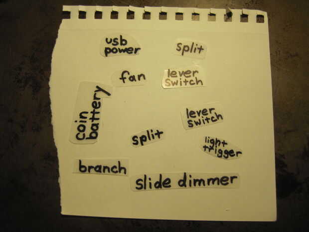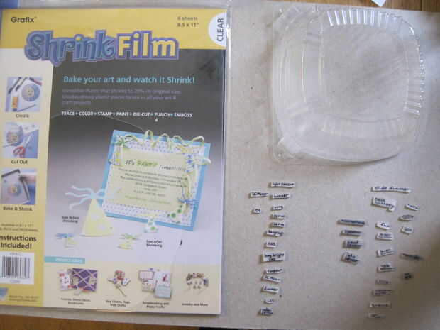 5) recortar palabras y colocarlas en "cartón de peso medio, hoja de teflón, papel pergamino o vitela (no cueza al horno en metal desnudo o en gres)." - según las instrucciones del paquete de la película de encogimiento. Hacer lo mismo para el plástico #6. Es la misma materia.