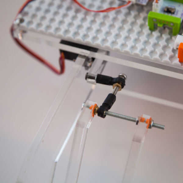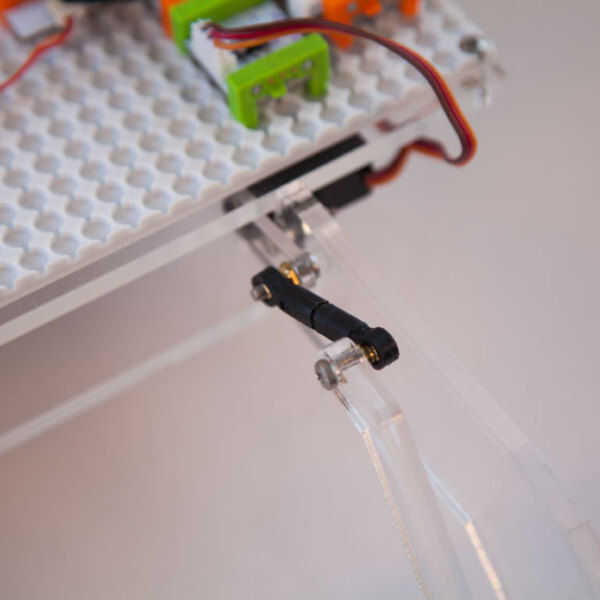 Utilizamos un eje de rosca de 3mm de Tamiya para adjuntar cada palanca a los brazos de servo. Como medida de seguridad, nuestro enfriador de agua requiere presionar dos botones a la vez para agua caliente, por lo que dos de nuestras palancas están conectados con el mismo brazo del servo.