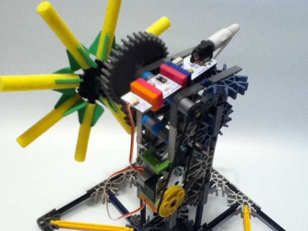 Para operar la flor mecánica, simplemente encienda el módulo de littleBits y mueva su mano sobre el sensor de luz de littleBits para ralentizar o acelerar el giro de los pétalos de la flor.