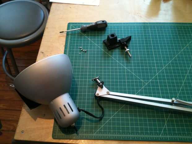 3. Retire la cabeza de una lámpara de escritorio, por lo que sólo se queda con el brazo. Considere cómo puede conectar usted cabeza de grappler al extremo del brazo de la lámpara.