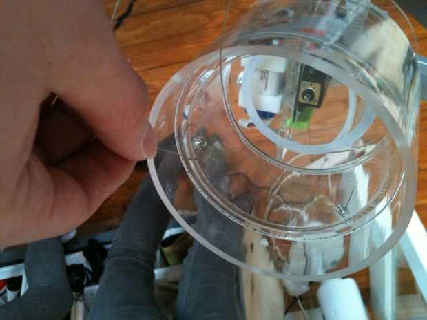 3. usando M3 tornillos y tuercas, pegar la parte inferior hasta la punta del brazo de la lámpara de escritorio. Hemos tenido bloqueo arandelas fuera para mantener la estancia tornillo apretadas y planas arandelas dentro para repartir la carga uniformemente y evitar que el acrílico de las vacaciones de.