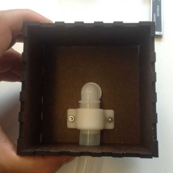 Inserte el extremo libre del tubo de silicona a través del agujero en la placa B-2, luego inserte el codo de 90 grados tubo púas en el extremo de la manguera. Empuje el otro extremo del codo a través del orificio de placa B-1, luego asegure el tubo con la abrazadera de manguera (3-d archivo incluido con estas instrucciones). Añadir un poco de pegamento a los bordes de cada placa (B-1 por B-6) y prensa que encajen juntos. Usted desea utilizar alguna cinta adhesiva o grapas para sostener las placas juntas mientras el pegamento seca. Asegúrese de limpiar cualquier exceso de pegamento que exprime hacia fuera cuando usted Junte las placas.