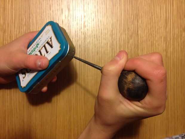 Paso 3: Perforar la lata Altoids para sensor de luz y zumbador