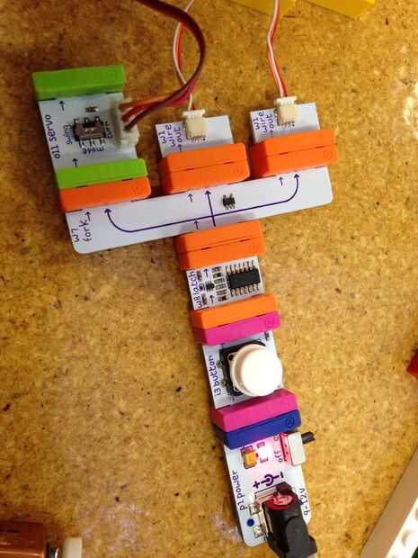 Y aún más de littleBits de experimentación, probar un control de pulso para hacer flash los ojos! O un tiempo de espera de bits para hacerle activo para sólo tanto tiempo antes de que se detenga automáticamente.