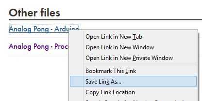 haciendo clic en el enlace y guardar como analog_pong_arduino.ino