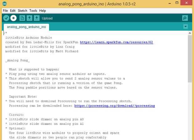 Haga doble clic en el archivo analog_pong_arduino.ino