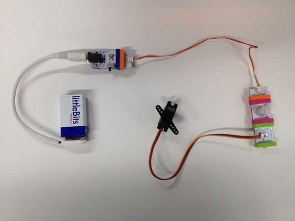 El circuito de prueba. Tendrá que estar muy quieto para no activar el disparador del movimiento. Entonces, cuando se mueve, debe girar el servo.