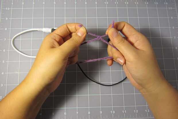 6. Pase el dedo a la mitad con la otra mano y dejar ir. El hilo se tuerza.