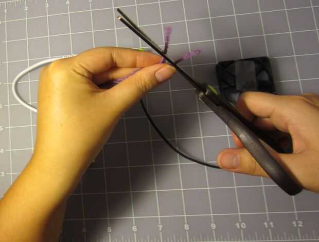 2. cinta adhesiva un trozo de hilo de unos 20-24 pulgadas de largo al centro de la unidad del ventilador.