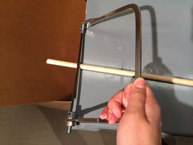 La longitud de la espiga de madera que se corta debe ser de 4 pulgadas. Después de cortar la espiga al tamaño, los dos extremos para que queden limpias y lisas en busca de la arena.