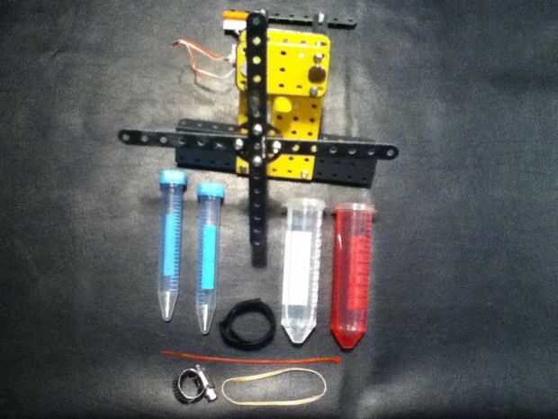 Yo he demostrado previamente cómo utilizar littleBits y erector set de piezas para la construcción de un agitador magnético y un rotador de muestras. Desde que era capaz de excitar montador máquinas con el motor de littleBits que decidí probar a util