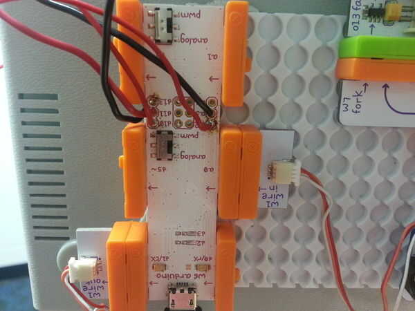 Ahora ya está acabado el caso, podemos empezar a construir el circuito. Las primeras herramientas y componentes que se requieren son el cautín, bits arduino, tijeras para alambre y los cables de puente. Si no sabes soldar, te recomiendo mirar este tutorial: https://www.youtube.com/watch?v=vHRiDOeYrHU de la soldadura de los cables de puente negro de pines A3 y D13; Estos dos son nuestros cables a tierra. Suelde un cable rojo al pin D11; Este es el cable para el sensor de temperatura. Suelde un cable azul al pin A2; Este es nuestro análogo sensor de alambre (yo usé un cable rojo). Soldar un cable rojo al pin D10; Este cable se utiliza para activar el transistor Darlignton para activar el ventilador de la computadora. Soldar una resistencia de ohm k 1 para el extremo del alambre en el pin D10.