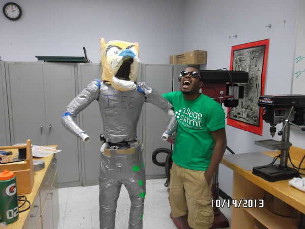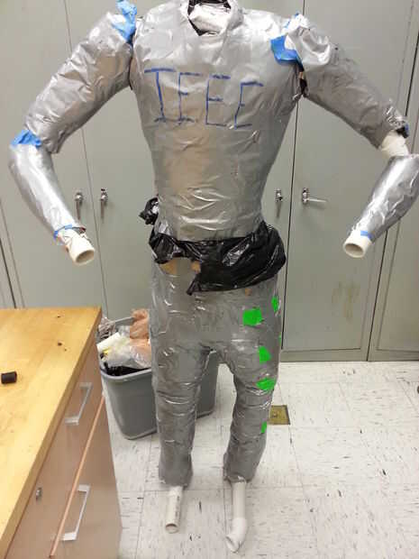 En este paso, necesitará muchas pilas de diario y mucha fuerza para rellenar a este Joe! A partir de las piernas, machacar hojas de periódico juntos y comenzar el embalaje. Paquete hasta que usted no puede empaquetar más de largo. Es necesario mucho! :) Después de embalar las piernas, saque el torso junto con la columna vertebral y los hombros. Coloque un pedazo de cartón en la apertura de la parte inferior del torso para evitar las bolas que caen del periódico. Ahora, el paquete del torso. Después de que ambos se embalan, coloque el torso en la parte de piernas y con cinta adhesiva. Los brazos de la materia y usar el cemento para pegar en el maniquí. Envuelva las articulaciones del brazo con cinta adhesiva. ¿Cómo te gusta la imagen de su cuerpo (maniquí)?