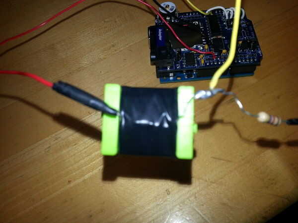 En este paso vamos a diseñar un circuito divisor de tensión: LED brillante 4,7 resistencia de ohmios k resistencia de 330 ohm + fotodiodo + cables de puente (rojo, negro, amarillo) + cinta aislante + soldadura + soldador. En primer lugar, tuerza los cables de las dos resistencias y tuerza un cable puente negro al segundo cable de la resistencia de 330 ohm. A continuación, enrosque un cable puente amarillo al otro cable de la resistencia k 4.7 (ambos conductores deben mirar la misma dirección). Retuerza los conductores combinados del cable amarillo y la resistencia de 4,7 k a uno de los conductores del fotodiodo. A continuación, enrosque un cable rojo con el segundo cable del fotodiodo. Después de que todos los cables necesarios están torcidos, saque su soldador y empezar a soldar! Soldar cada uno de los hilos retorcidos entre sí. Después de cada cable se suelda, asegure las juntas soldadas con cinta aislante. En el siguiente paso, será necesario: LED brillante + cinta aislante + fotodiodo. Tomar el fotodiodo y coloque la cara de él en el LED del LED brillante; Asegúrese de que está colocado directamente en el LED. Por último, utilice cinta aislante para fijar el fotodiodo en el lugar.