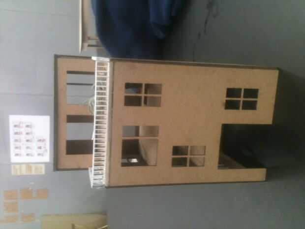 Empezó a dibujar una casa plana en illustrator y luego recortarlo con el lasercutter en cartón grueso de 2,5 mm.