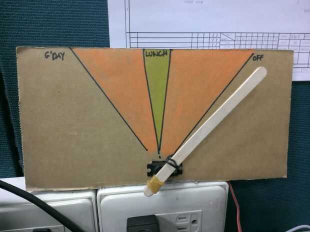 En el código de servidor puede modificar los valores de salida analógica de servo encontrado Inicio día final (nada en el medio es lineal escala), el inicio del trabajo y trabajo final tiempo, dispositivo de Arduino conectarse a y ese tipo de cosas...