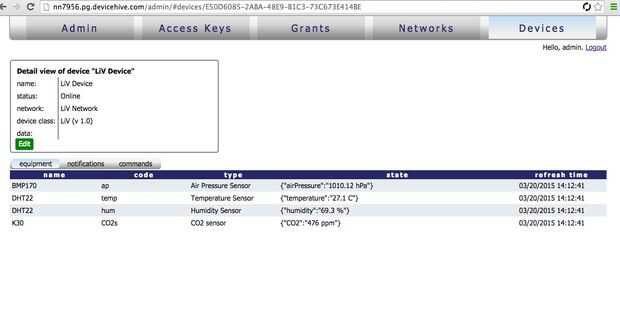 Escribir código Python para conectar a tu plataforma preferida de IoT. Actualmente la muestra código para conectarse: DeviceHive, ThingSpeak, Xively, data.sparkfun.com, Emoncms, analog.io se proporciona en LiV repositorio en GitHub.