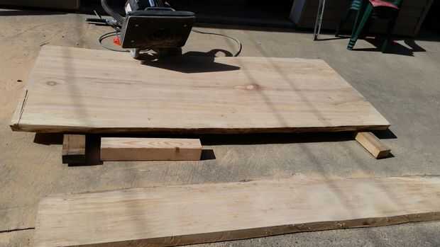 conseguimos una llamada para entrar en un espectáculo pero con 5 días de aviso que no era tiempo para recuperar cualquiera de nuestras piezas de mobiliario más grandes para mi hijo ya establecidos para crear una tabla desde cero, de la madera cortamo