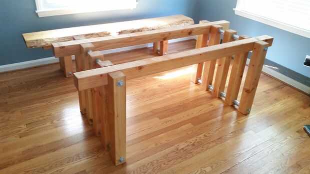 Apenas nos mudamos a nuestra nueva casa y decidimos que el comedor tendría un tema rústico. La señora quería una mesa de estilo casa de campo. Tengo los planes de sitio web de Ana White (http://ana-white.com/2013/09/plans/4x4-truss-beam-... Hay instr