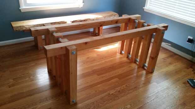 Apenas nos mudamos a nuestra nueva casa y decidimos que el comedor tendría un tema rústico. La señora quería una mesa de estilo casa de campo. Tengo los planes de sitio web de Ana White (http://ana-white.com/2013/09/plans/4x4-truss-beam-... Hay instr