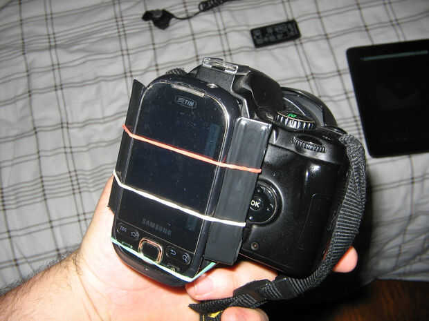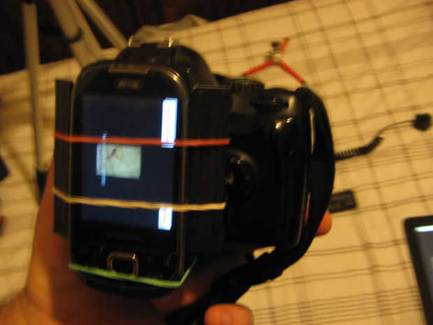 Así que sustituyendo la webcam con el teléfono inteligente sería capaz de orientar la cámara mirando la pantalla del smartphone (casi como el reflejo tenía visualización directa en su propia pantalla de LCD), y sería capaz de conectar también la tableta a lo smartphone (y hacerlo de forma inalámbrica)