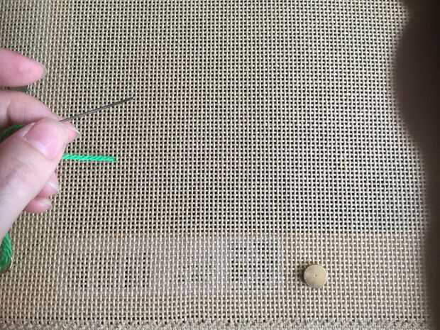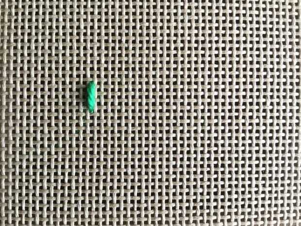 Esta primera puntada comienza su patrón. Usted casi siempre de la puntada vertical con bargellos y esto es válido para puntada de llama. Entrar en la lona, traer aguja 4 filas antes de punzante aguja a la parte posterior.