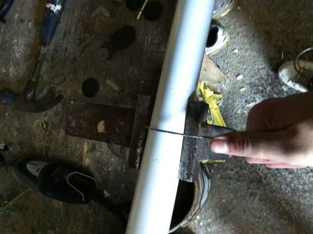 Corté el tubo de PVC a la medida de unos 2cm de largo por lo que pude pegar en las partes anteriores. Luego corté el tubo de PVC a la mitad.