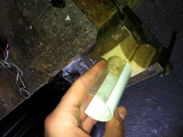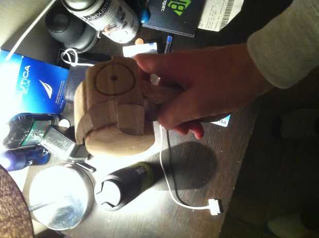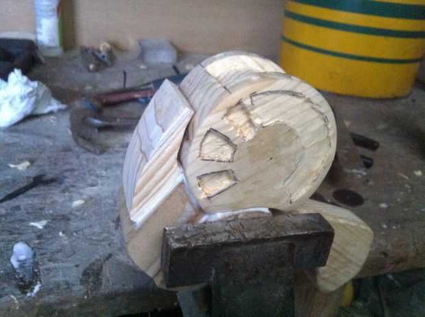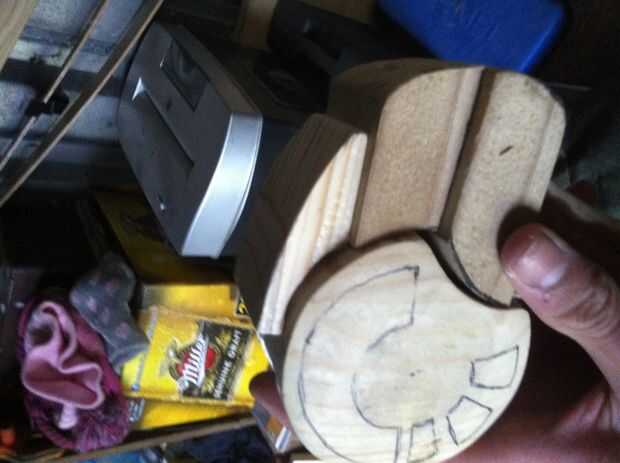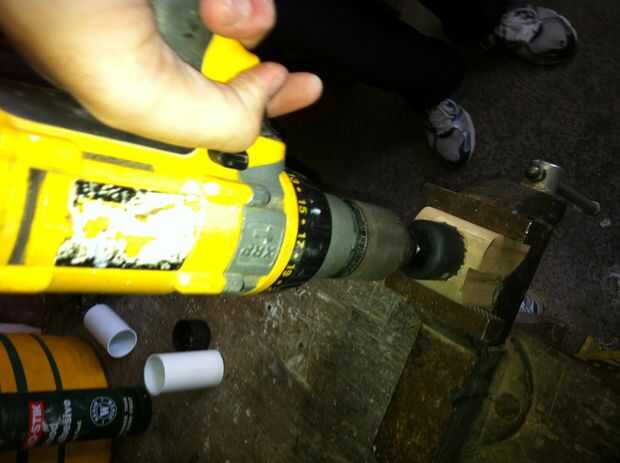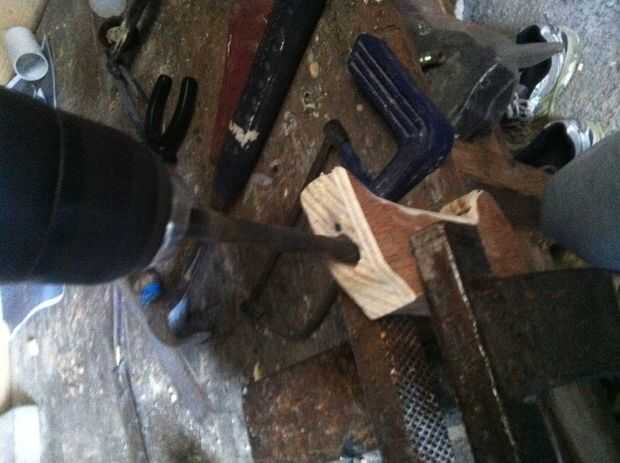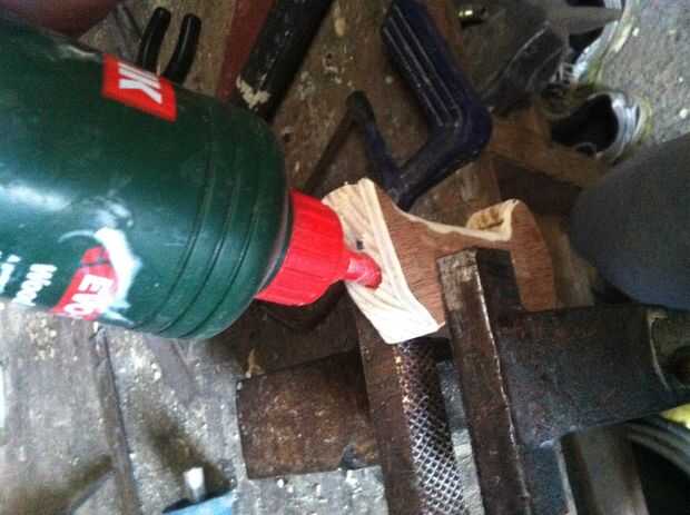 4. taladrar un agujero de unos 2cm de profundidad, usando pedacitos de agujero en las partes medianas por lo que pude insertar el barril más grande en ellos. Puse el cañón en este agujero y asegurar con pegamento.