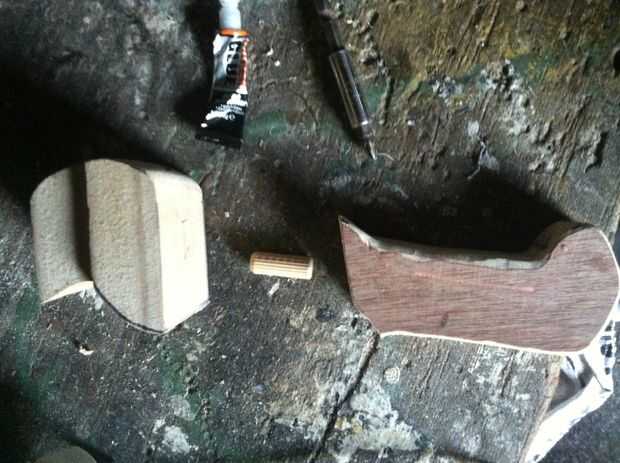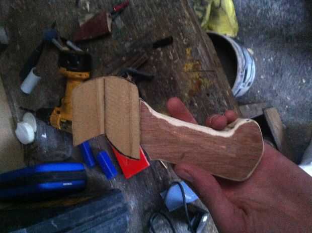 2. a continuación decidí pegar la parte trasera a la parte de mango y medio (arriba).