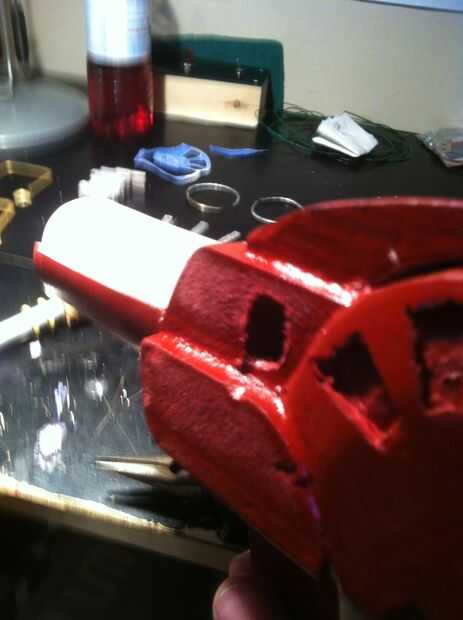 5. luego añadí el cañón más pequeño al cañón más grande usando pegamento caliente.
