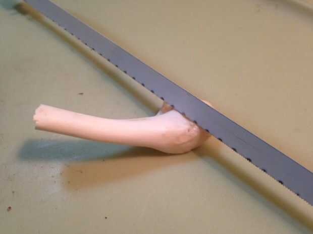 Cortar los huesos a la longitud deseada - más para ver 2 segmento o menos de 3 piezas. Si solo usas dos segmentos, un pájaro más grande funciona mejor y se puede omitir el hueso más grande. Asegúrese de que todos los 3 huesos quepan juntos. Puede utilizar papel de lija para presentar los extremos para que encajen en su lugar.