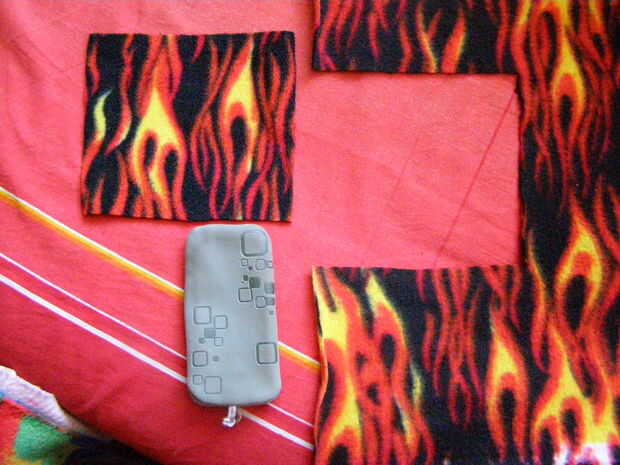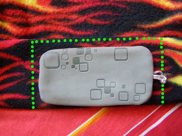 Poner la manga teléfono celular viejo en la tela del paño grueso y suave. Si usted necesita, puede dibujar líneas alrededor de la manga. Luego cortar el rectángulo.