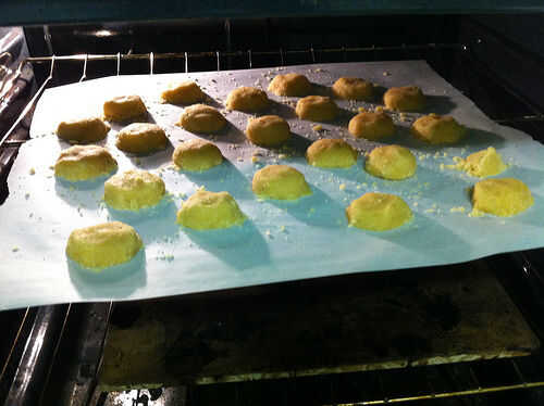 Hornear en un horno se ha precalentado a 375 grados F durante unos 9-11 minutos o hasta que los bordes están considerando apenas empezando a doren.