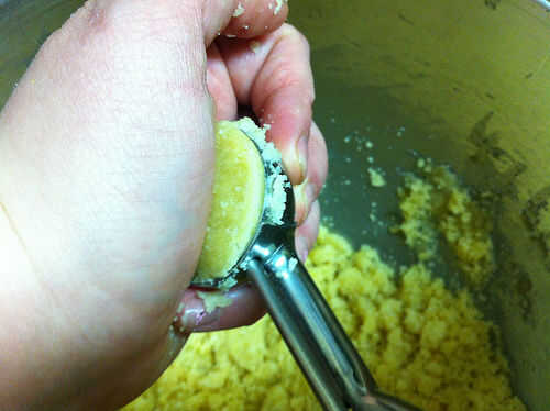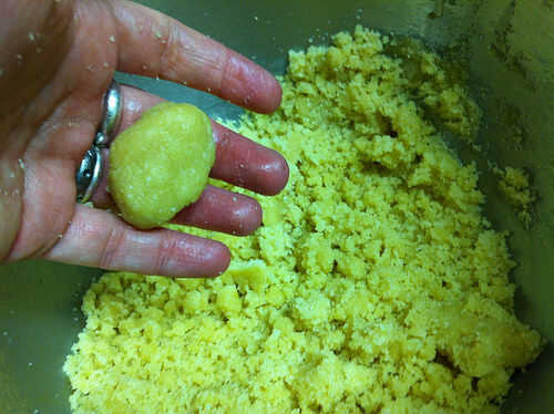 Tratarlos aplane un poco, pero lo hace lentamente. Trabajar rápidamente con esta masa solo hará desmoronarse.