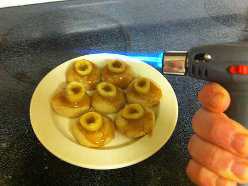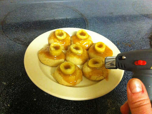 Cuando la gente está dispuesta a ver el espectáculo, apaga las luces, encienda el soplete de cocina y luz las galletas! Mina se quemó para un par de minutos, suficiente tiempo para ajustar un par de fotos rápida mientras los niños estaban tirando de mí y tratando de comer el caramelo de la sartén.