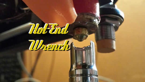 Al principio, solo usé un par de alicates de punta que guardo todo para la limpieza de las puntas de boquilla de plástico caliente, pero entonces tuve una idea. Si podía usar una llave para aflojar la tobera, haría más rápido para poder cambiar las puntas y evitar los arañazos que lentamente están ocultando el tamaño de la punta que está grabado en la cara.