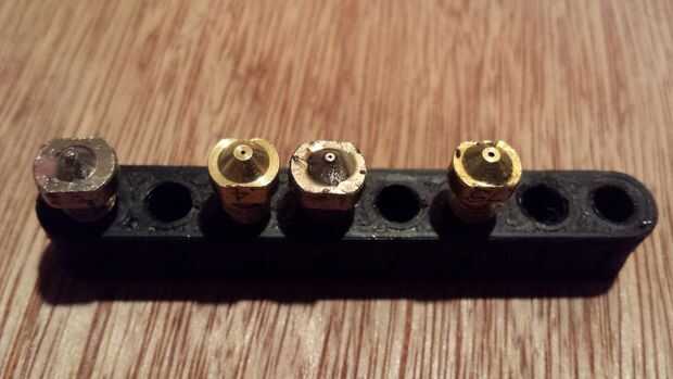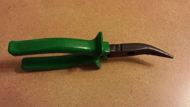 Las boquillas del lado de Printrbot Ubis13 caliente son redondas con 2 caras planas. Cuando se quita la punta de la boquilla, tiene que girar bastante duro para que se suelte y la mejor manera que he encontrado es con un par de alicates de punta curvada. Me dan el impulso que necesario, manteniendo que mis nudillos claro del extremo caliente y otras obstrucciones. La desventaja de este método es que sólo hay 2 caras planas, no 6 como un perno hexagonal normal. Si has frustrado alguna vez por una cuadrada perno o la tuerca, esta es aún peor. Por los 2 lados, es inútil tratar de usar una llave abierta regular terminada. La peor parte de los alicates es que pueden rayar los lados de la boquilla, oscurecimiento de las marcas que indican qué tamaño es la boquilla.