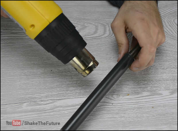 Puse un resorte doblador de tubo en un tubo de PVC y calienta con una pistola de calor.